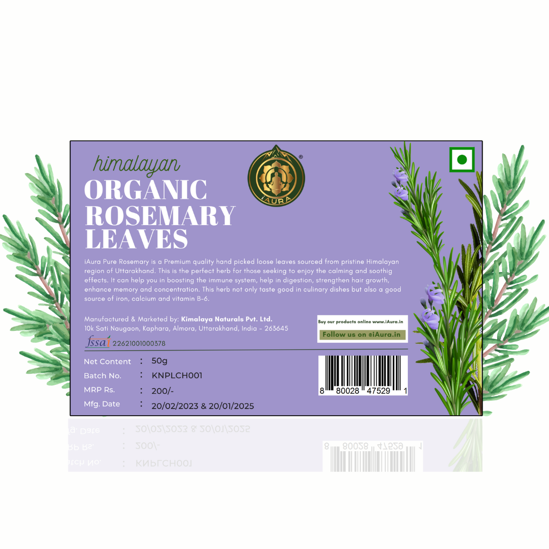 Awaken your mind and senses with the invigorating essence of iAura Himalayan Rosemary. Ethically wild-harvested from the pristine, sun-drenched slopes of Uttarakhand, our rosemary is a pure and potent botanical. This evergreen herb, a symbol of memory and clarity, offers a distinctly fresh, piney, and slightly camphoraceous aroma. When brewed as a herbal tea or tisane, it releases an earthy, invigorating flavor that cleanses the palate and uplifts the spirit. iAura Himalayan Rosemary is more than just a tea; it's a sensory journey that connects you to the clear, crisp air of the mountains and a tradition of holistic wellness. It embodies our brand's promise of purity, vitality, and the untamed power of nature.